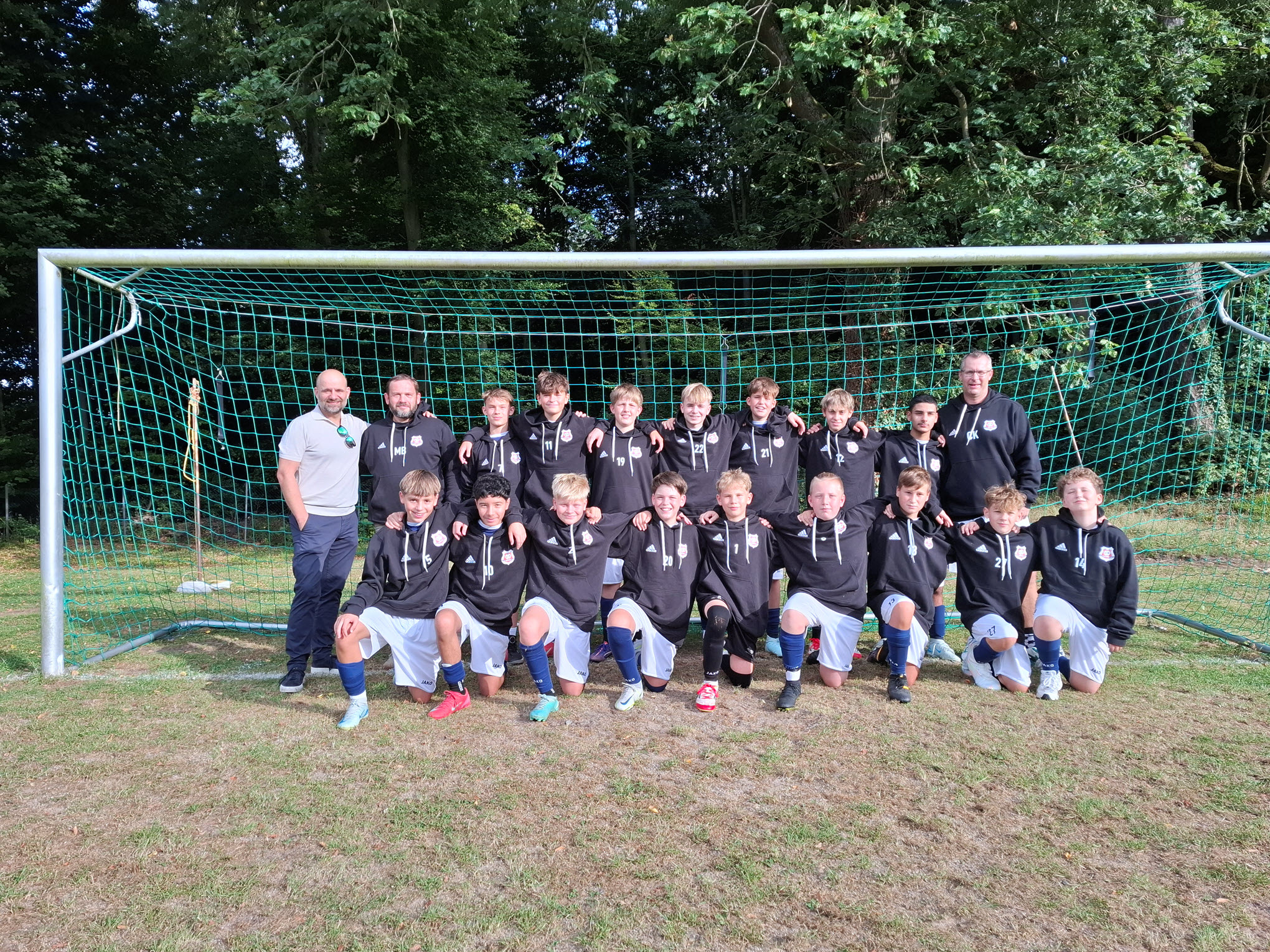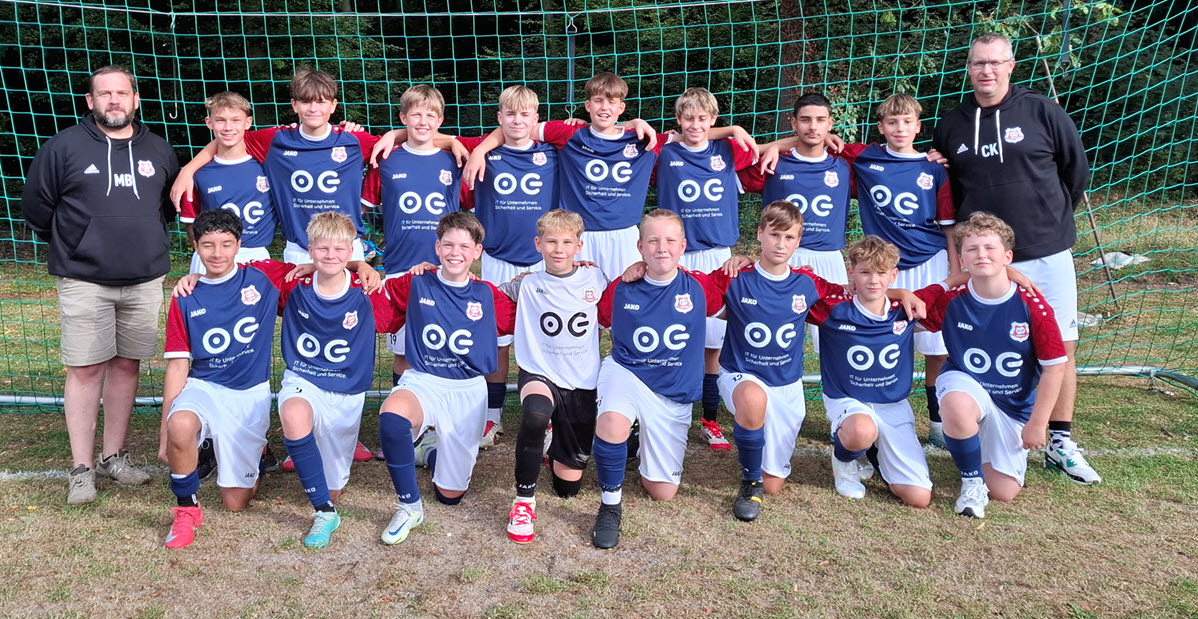 Das Team der C2 bedankt sich für die neuen (blauen) Trikots bei der Fa. Österreiche e.K..